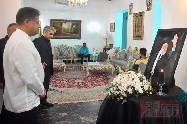 ඉරාන අධ්යාත්මික නායක අයතුල්ලා අල් කමේනිගේ අභාවය වෙනුවෙන් අවසන් ගෞරව දැක්වීම සඳහා සර්වජන බලයේ නායක, පාර්ලිමේන්තු මන්ත්රී දිලිත් ජයවීර මහතා ඉරාන තානාපති කාර්යාලයට ගොස් තිබේ.
