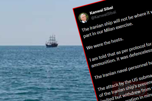 ඉන්දියාවේ ආරාධනය මත යුද අභ්යාසයට පැමිණ ඉන්දීය ජනාධිපතිවරියට ආචාර කළ මෙම ඉරාන නෞකාවේ ගමන් කළ නාවිකයින්ගේ මරණ සම්බන්ධව කණගාටුව පළකිරීමට සිය නාවික හමුදාවට වගකීමක් ඇතැයි එරට හිටපු විදෙස් කටයුතු ලේකම් කන්වාල් සිබාල් මහතා පවසයි. ඔහු වැඩිදුරටත් පෙන්වා දෙන්නේ අමෙරිකාව යුද අභ්යාසය අවසන් මොහොතේ මඟහැරීමට ද මෙම ප්රහාරය පිළිබඳ තිබූ පෙර සූදානම හේතුවන්නට ඇති බවය. ඔහු මේ බව පවසා තිබුනේ සිය X ගිණුමේ සටහනක් තබමිනි.